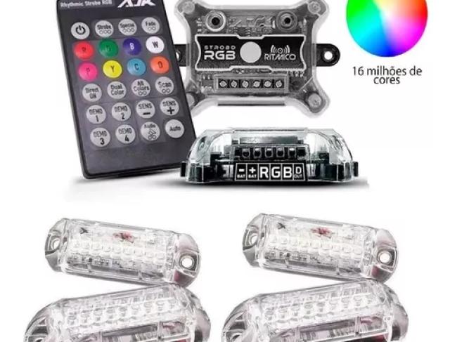 Faróis Strobo RGB AJK Universal com 9 LEDs 12V 3W 12 Efeitos 8 Cores Endereçável *PRODUTO PATENTEADO*:
